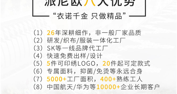 恤大王系深圳市派尼歐服裝有限公司的品牌,29年專注T恤衛(wèi)衣POLO衫等服裝定制,成就客戶品牌.