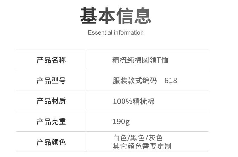 特性:185g 經(jīng)典黑白灰T,柔軟舒適,親膚透氣