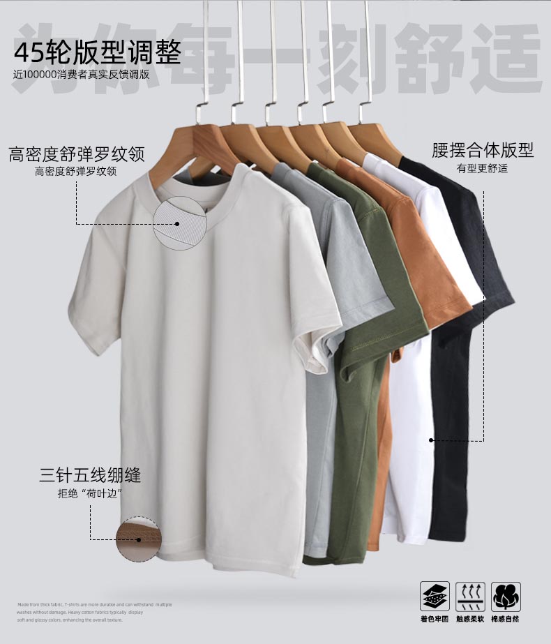 185g 經(jīng)典黑白灰T,柔軟舒適,親膚透氣